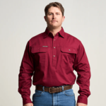 KILCOY | Mens Half Button Long Sleeve Work Shirt - Burgundy OBCMWS001-BUR